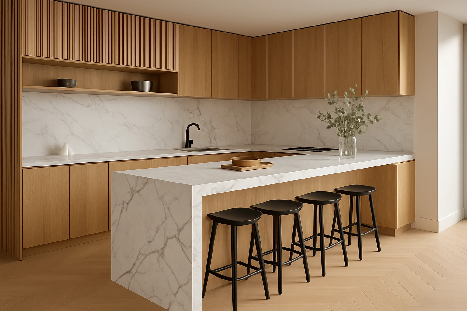 Bright and luminous, this sintered stone slab features a pristine white base with soft, drifting grey veins that create a subtle, marble-inspired look. Its clean, bright appearance brings an elegant, timeless aesthetic to any space.