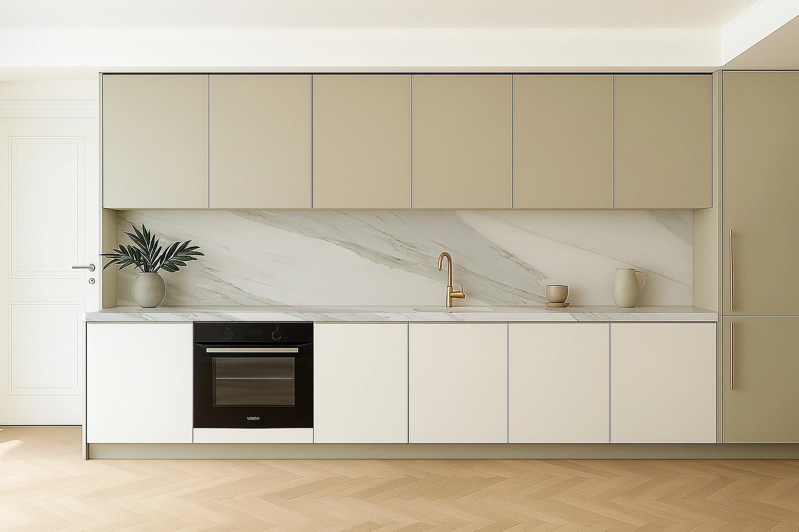 Crisp white base streaked with sweeping grey-beige veins that flow like delicate fish maw ribbons, bringing serene elegance and airy sophistication to any space.